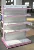 Gondola Shelf Specifications: 1) Single-side: 900 / 1,200 x 450 x 1,800mm 2) Double-side: 900 / 1,200 x 900 x 1,800mm 3) End Shelf: 900 * 450*1600mm 4) Size of post: 30*70, 30*60 5)Capacity per layer: 50-80kg 6) Light and small 7) Post: big square-tube, can hang floriated brackets 8) Can insert organic glass at the forepart of the layers